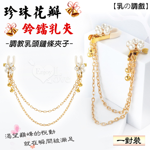 【乳の調戲】高檔珍珠花瓣鈴鐺乳夾~女用調教乳頭鏈條夾子﹝一對裝﹞