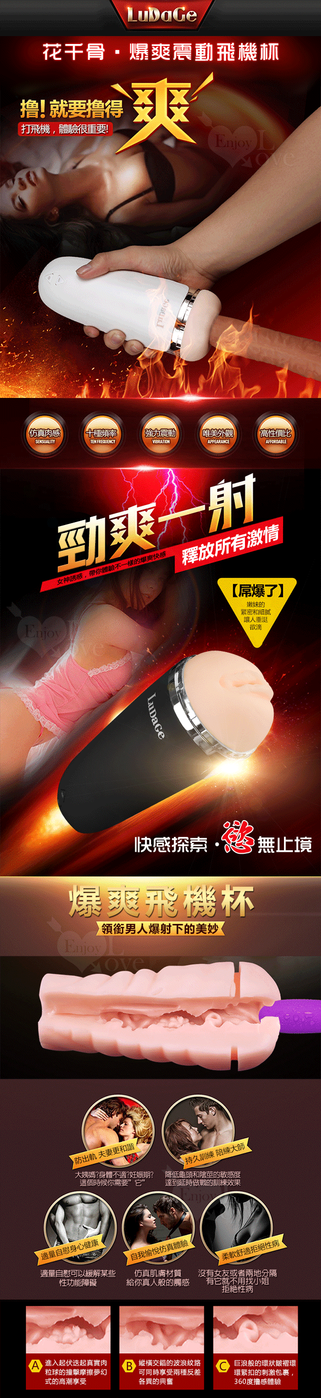 LuDaGe 花千骨‧仿真肉感USB充電爆爽震動飛機杯 - 進階發音板﹝鋼琴黑﹞