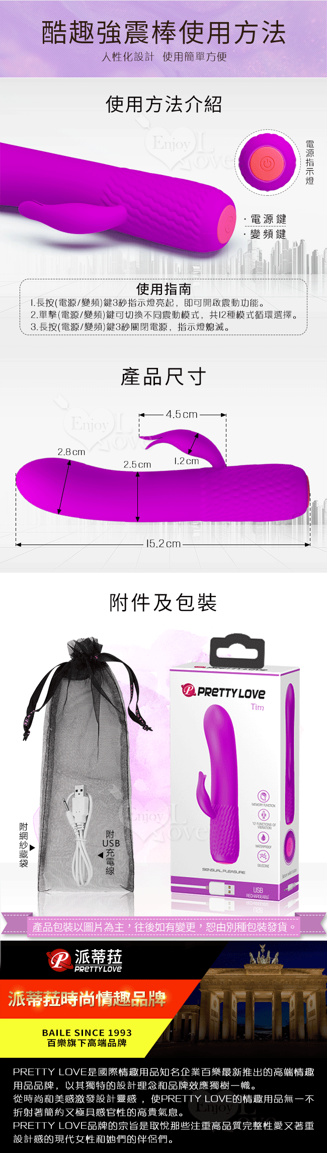 派蒂菈‧Tim 酷趣 內外雙觸擊12段頻強力震動棒﹝柔膚Q彈+USB充電+深度防水﹞