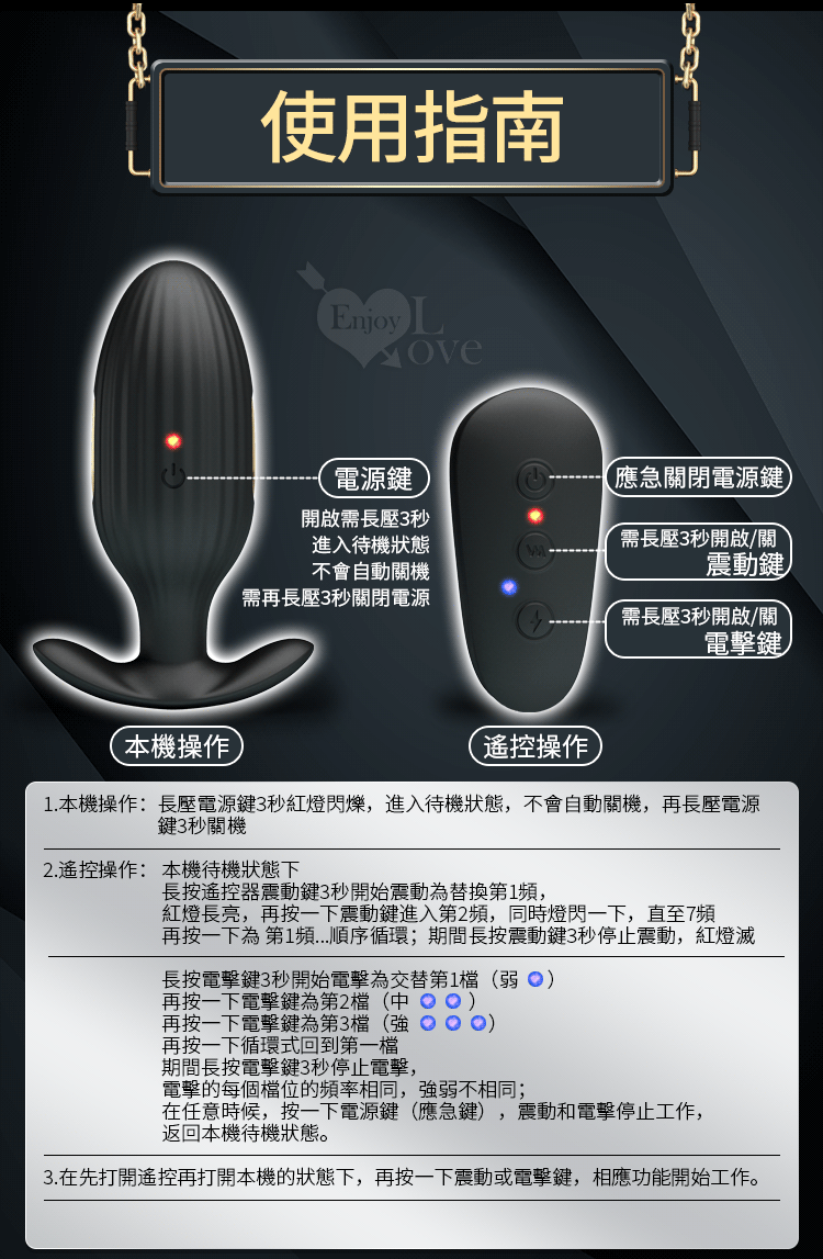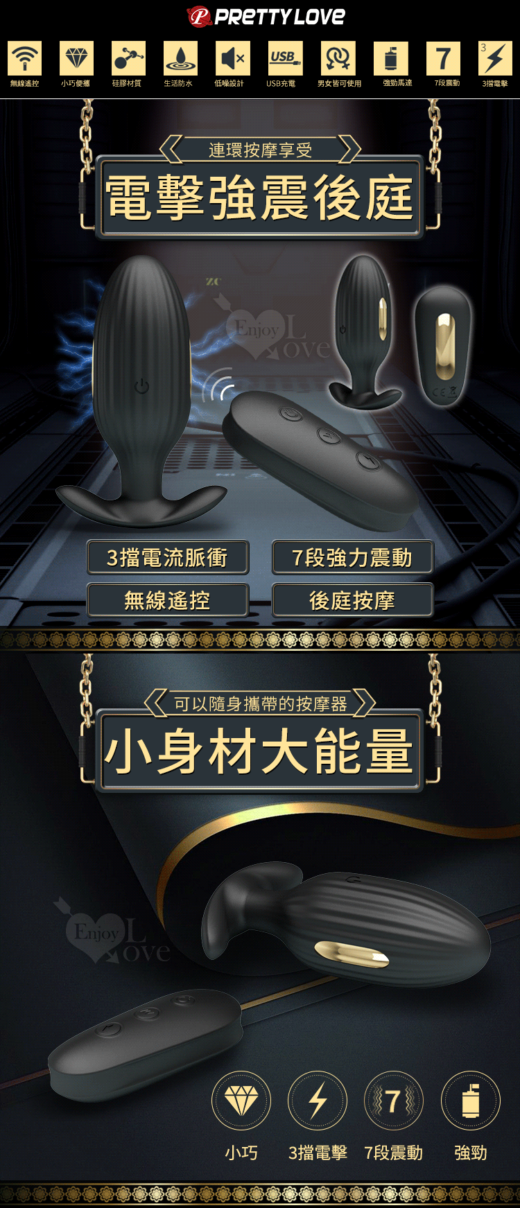 派蒂菈 ‧ 無線遙控電擊強震後庭塞﹝3檔電擊+7頻強震+舒適硅膠+USB便捷充電﹞男女通用