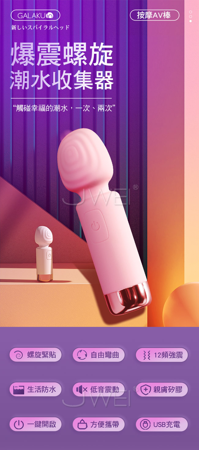 美季AV按摩棒採用螺旋設計更刺激更貼合,接觸面更大,貼合私處喚醒更多敏感區域。震撼的穿透力從更深處引發海嘯,蜜豆之下覆蓋大量的敏感組織脈衝波能夠刺激到身體更深處。360°彎曲彈性頸部彎曲設計,能刺激更細微敏感處。一鍵開啟口袋掏出來就能用。