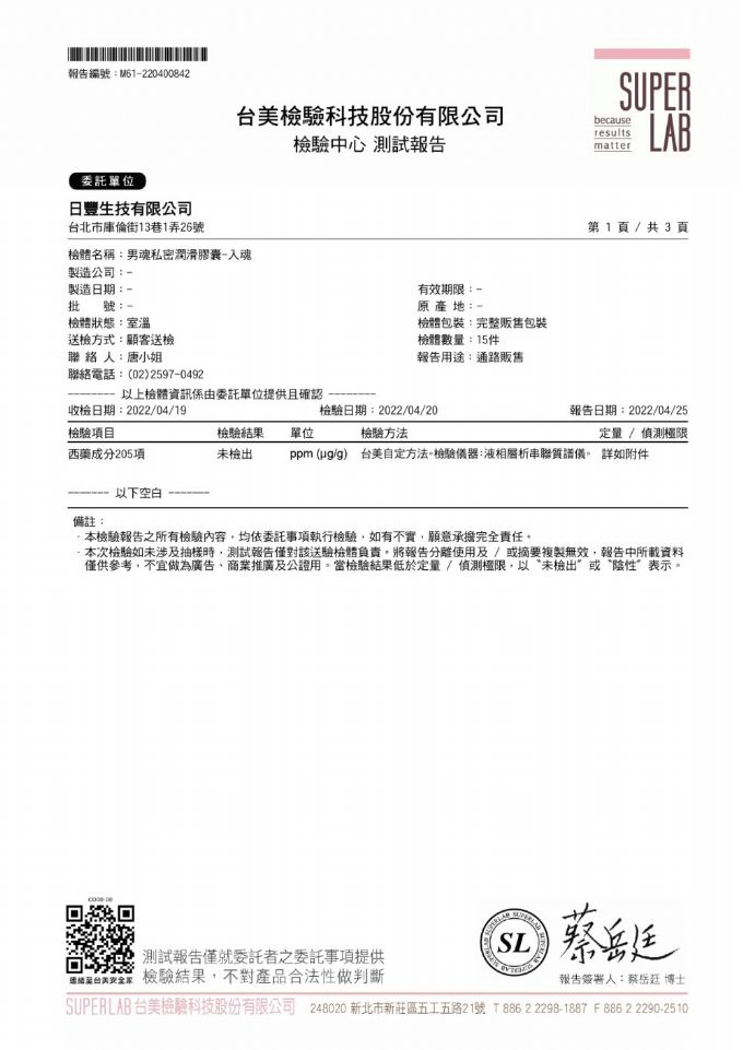 註:本品再業經台美檢驗科技股份有限公司,做205項西藥成份檢驗、化妝品重金屬4項成份檢驗、化妝品塑化劑7項成份檢驗,結果都未檢出(如報告),敬請各位消費者安心使用。