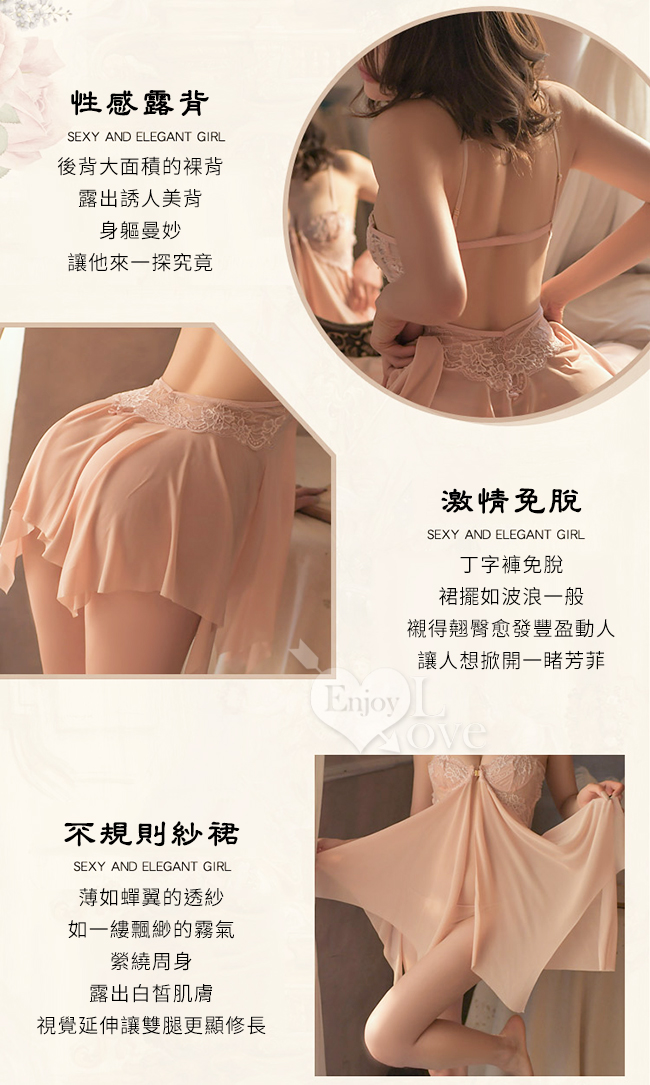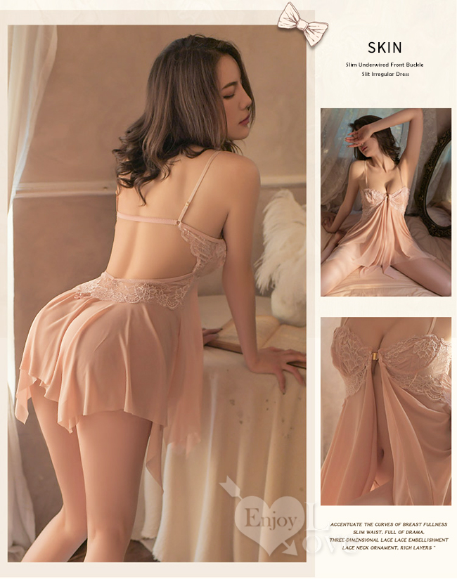 | 情趣睡衣!細帶鋼圈聚攏美胸前掛扣開襟不規則連身裙兩件組﹝膚﹞