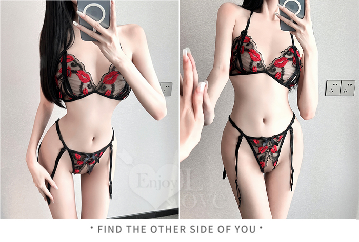 ►您現在的位置:首頁>情趣比基尼!刺繡性感紅唇透視薄紗開襠免脫兩件組