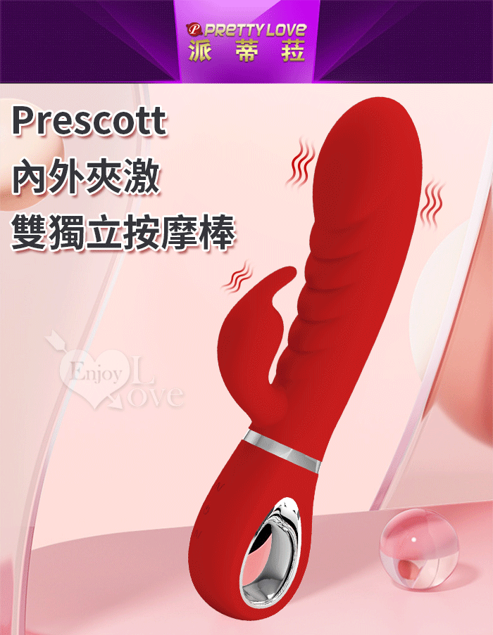 派蒂菈 ‧ Prescott 內外夾激 優雅時尚雙獨立操控按摩棒﹝親膚軟矽膠+7頻強震+靜音+防水+快捷充電﹞艷紅