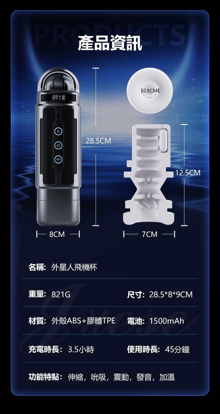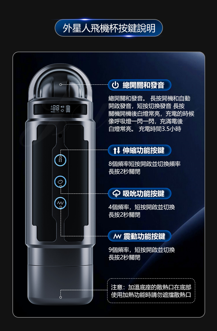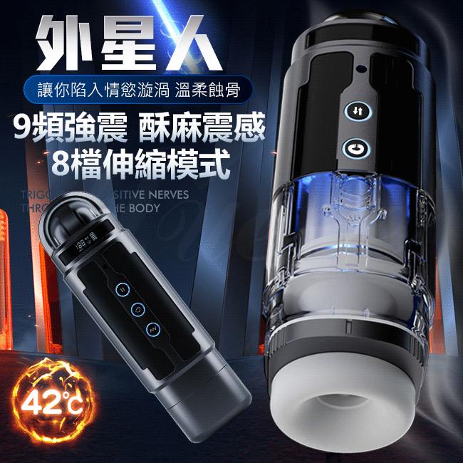 | 謎姬 MizzZee.外星人 8段伸縮+9頻震動+4段吸吮液顯發音加溫電動自慰杯