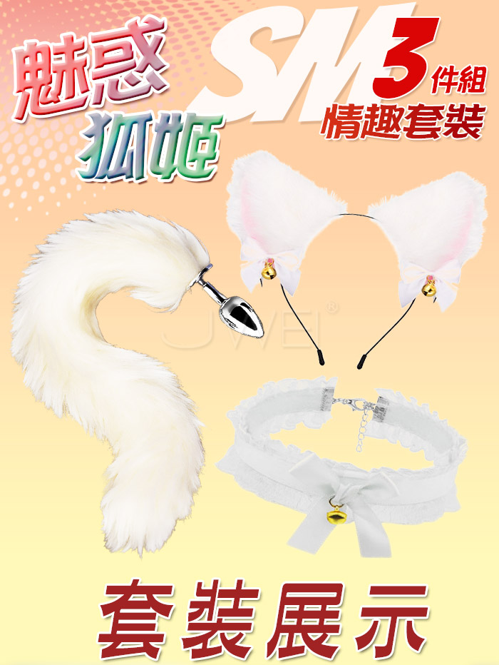 首頁>魅惑狐姬 ‧ 激性扮演3件組 ﹝狐狸尾巴+毛絨髮箍+蕾絲頸圈﹞白色