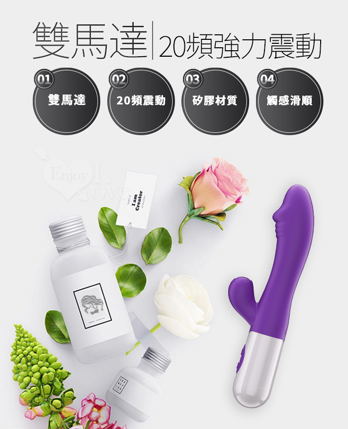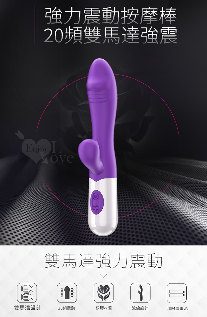 ►您現在的位置:首頁>NEnjoy Love ‧ 強力雙震 內外同享 20頻電動按摩棒~電池款 - 紫
