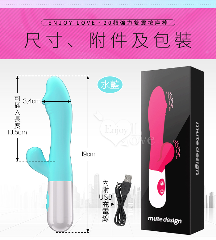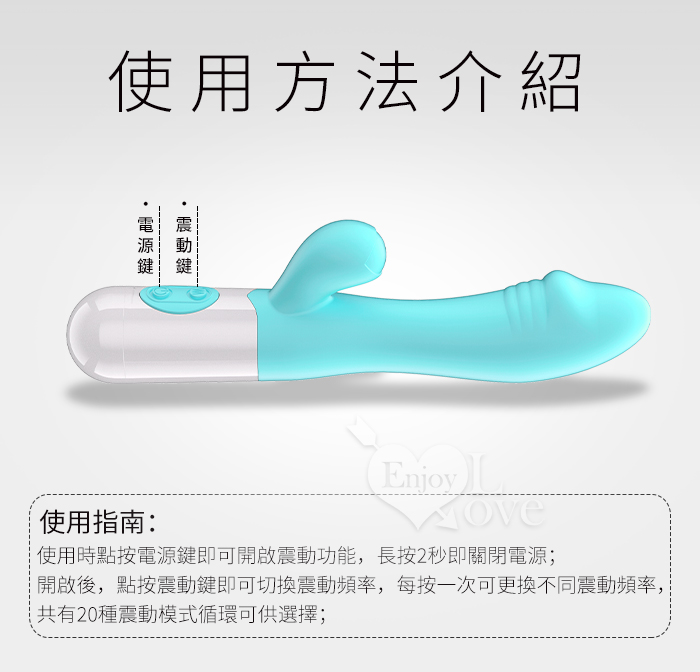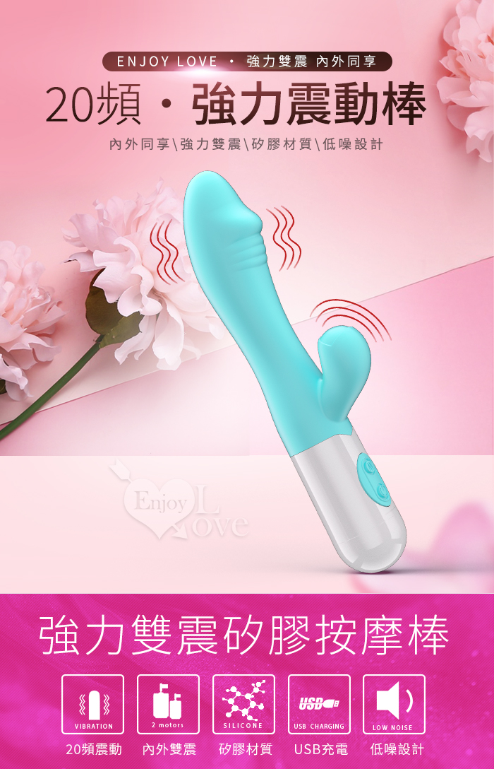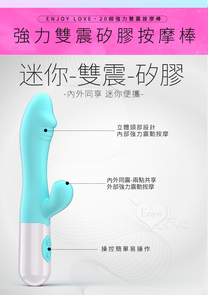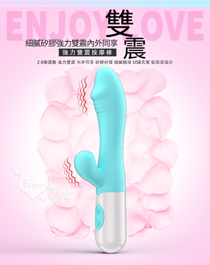 | Enjoy Love ‧ 強力雙震 內外同享 20頻電動按摩棒~充電款 - 水藍