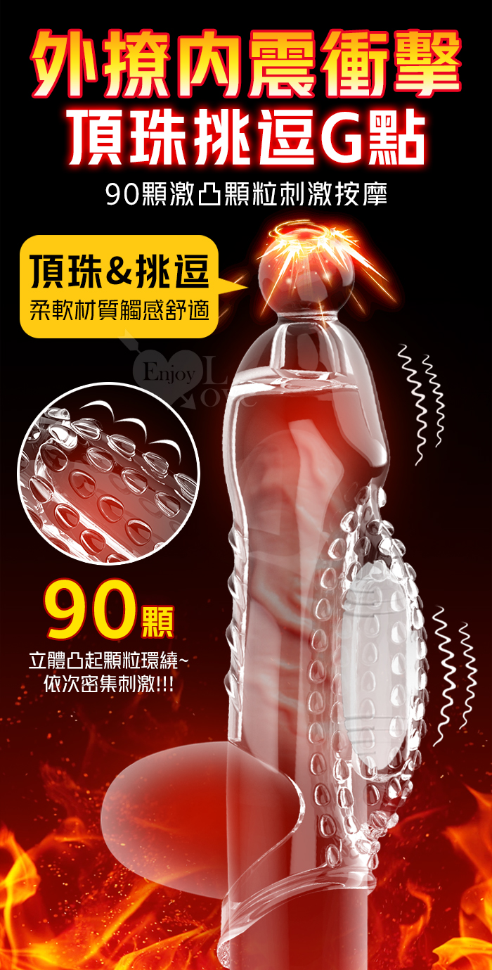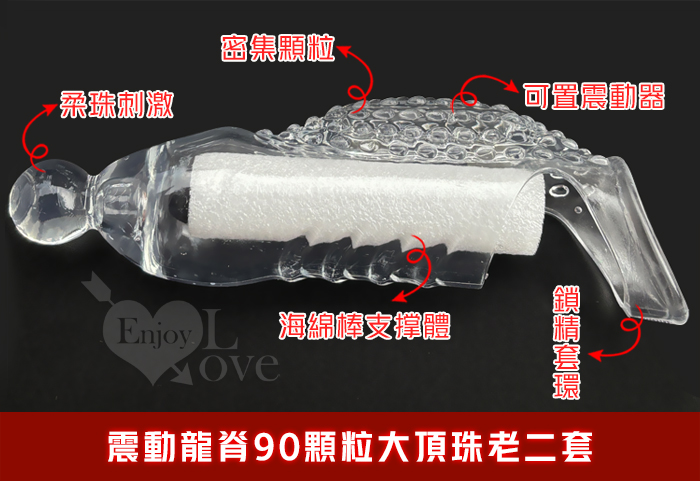 取悅 ‧ 震動龍脊90顆粒大頂珠老二套~凸點/環紋/增長增粗物理持久隱身加強套﹝透明色﹞