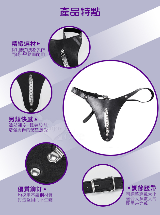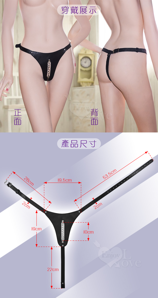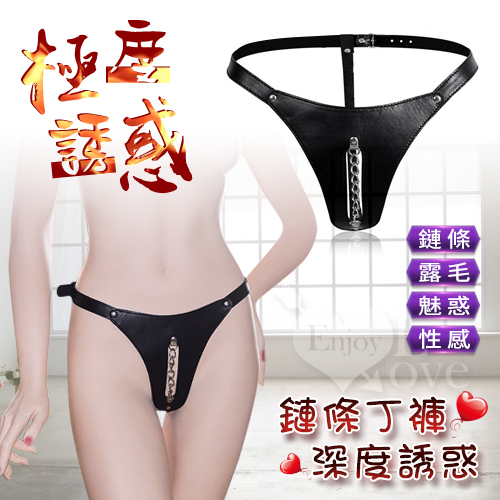 PU皮革和不銹鋼鏈條組合的丁褲,深度誘惑,凸顯女性迷人曲線,魅惑迷人。 冰冷的金屬環可以刺激灼熱的欲望。 製作精良,柔軟舒適。 尺寸:FREE SIZE (35吋腰內都可適穿)