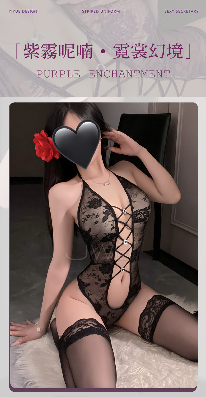 首頁>喚慾花靡.火辣開胸花蔓薄紗透視美背連體衣【黑色】