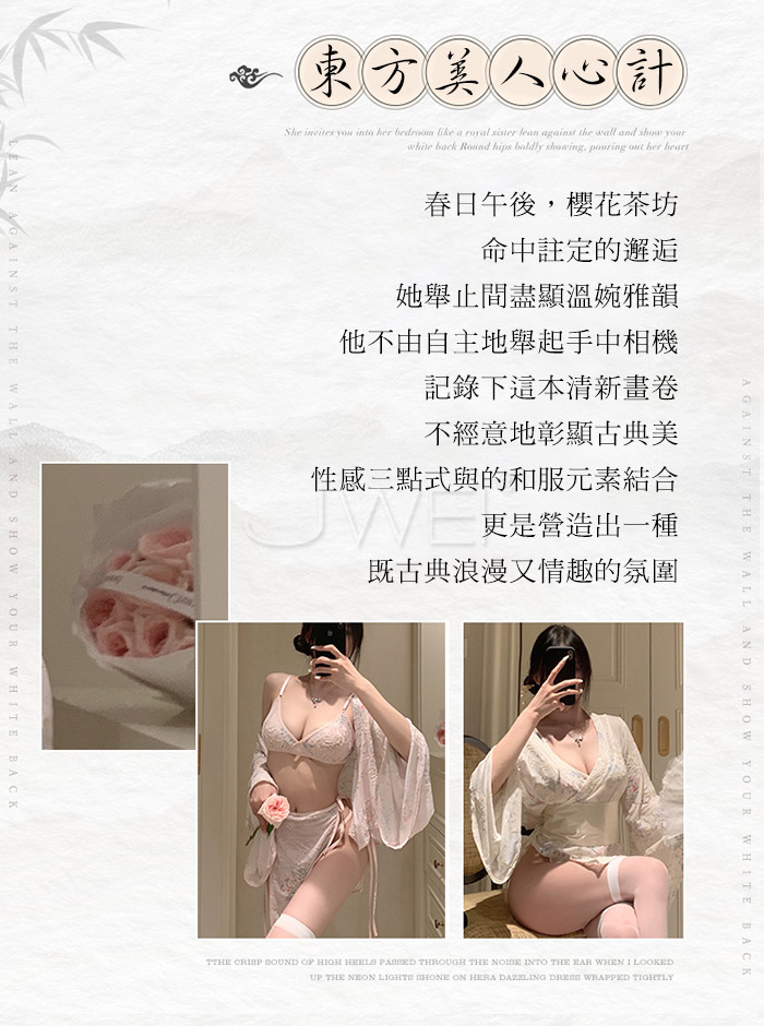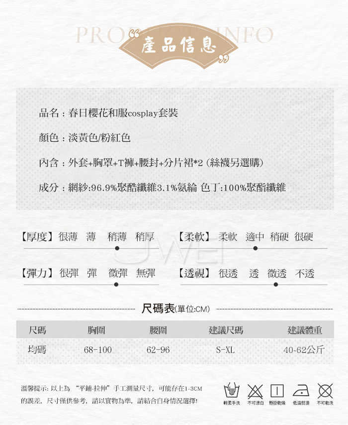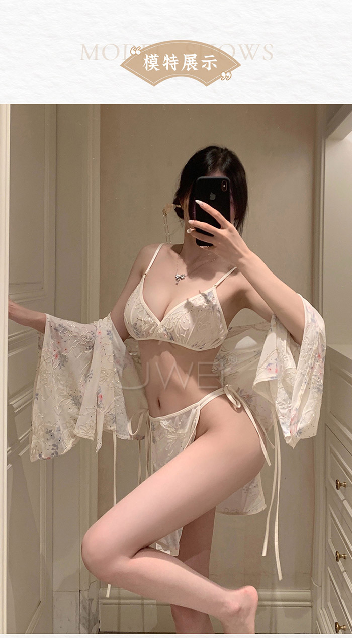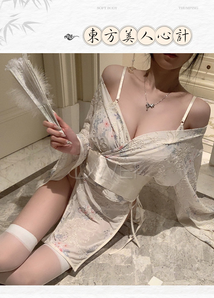 ►您現在的位置:首頁>春日櫻花.風情開襟露胸微透日式和服套裝-淡黃色【外套+胸罩+T褲+腰封+分片裙*2】