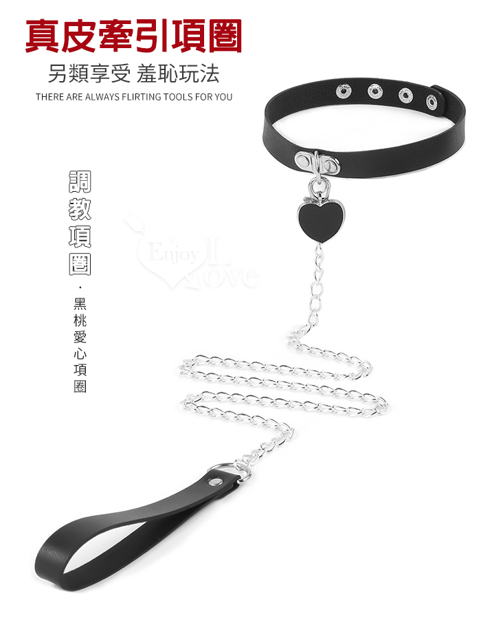 SM 刑奴扮演 ‧ 愛心掛飾項圈+牽引繩~金屬鐵鏈組合