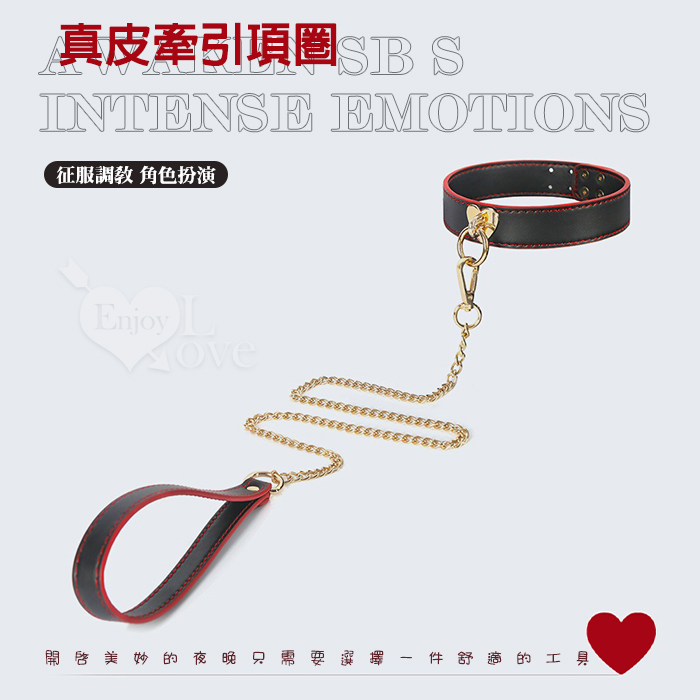 SM 刑奴扮演 ‧ 黑紅色真皮項圈+牽引繩~金屬粗鐵鏈組合