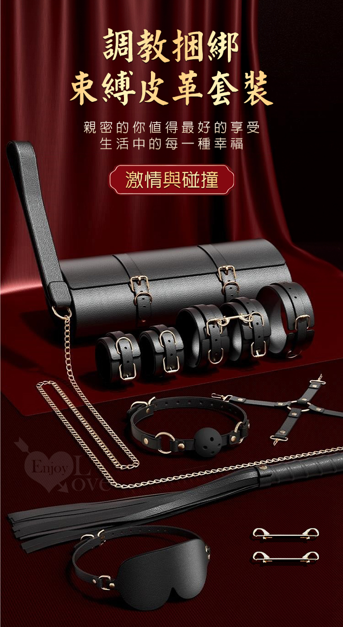 SM情趣道具 ‧ 調教捆綁束縛皮革七件套~時尚包包/方便收納/成人性愛玩具﹝經典黑﹞