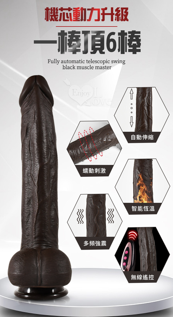 ►您現在的位置:首頁>羅馬鬥士 ‧ 黑老大 超高仿真液態矽膠肉感陽具﹝無線遙控9X9蠕動伸縮震動+42°恆溫+吸盤+磁吸充電﹞