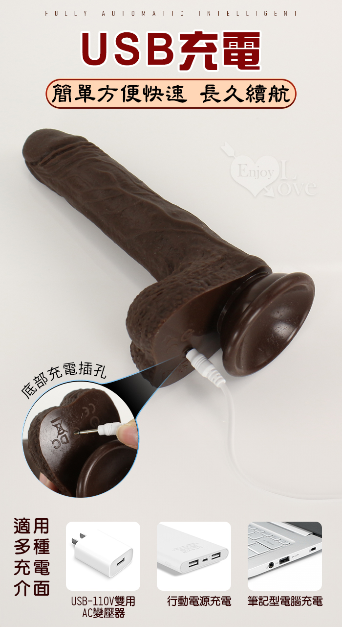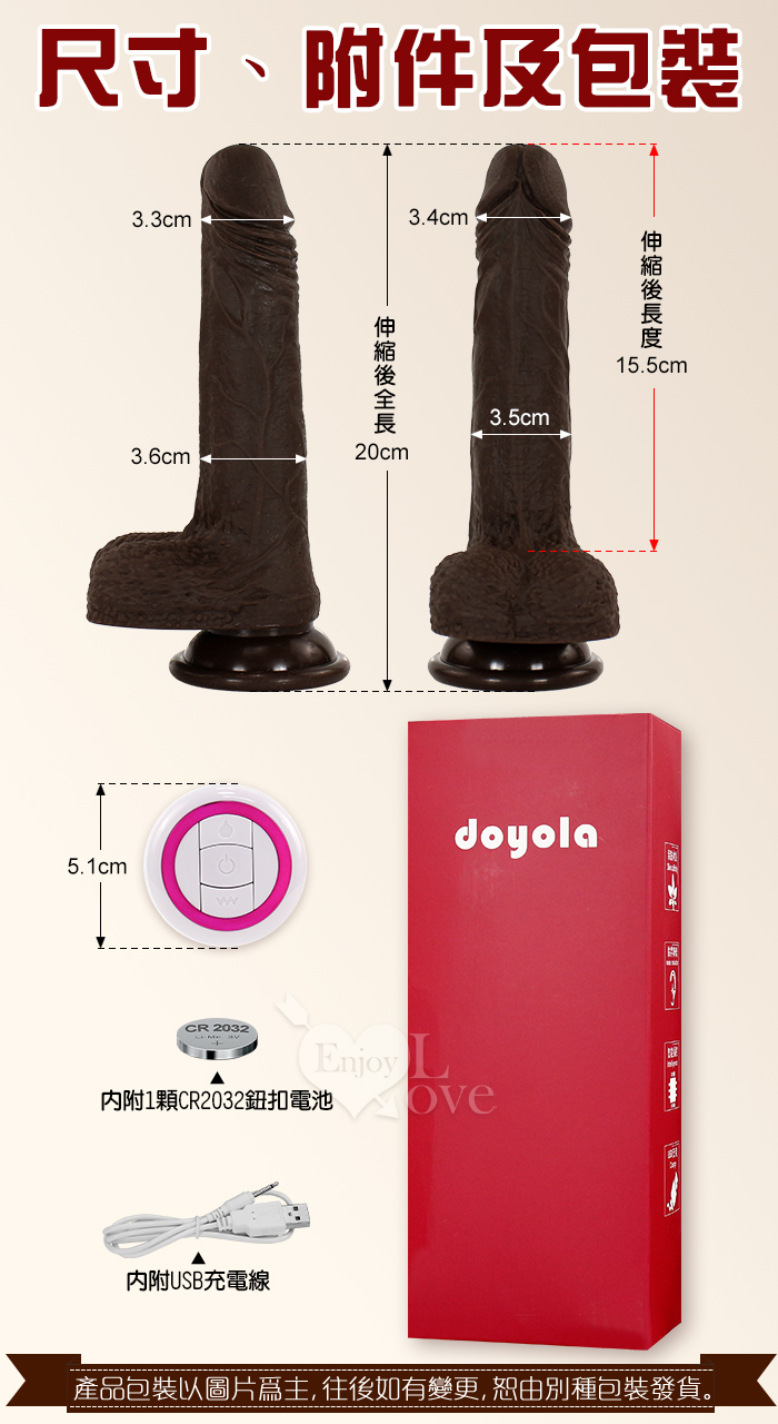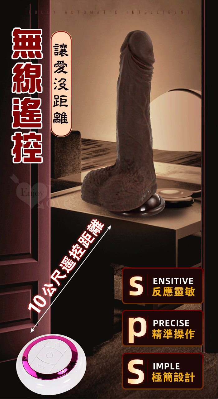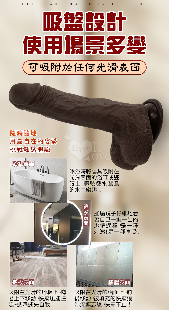 Enjoy Love ‧ 黑金剛 5x10頻伸縮蠕震動逼真肉感加溫吸盤老二棒﹝無線遙控/兩種操控模式﹞