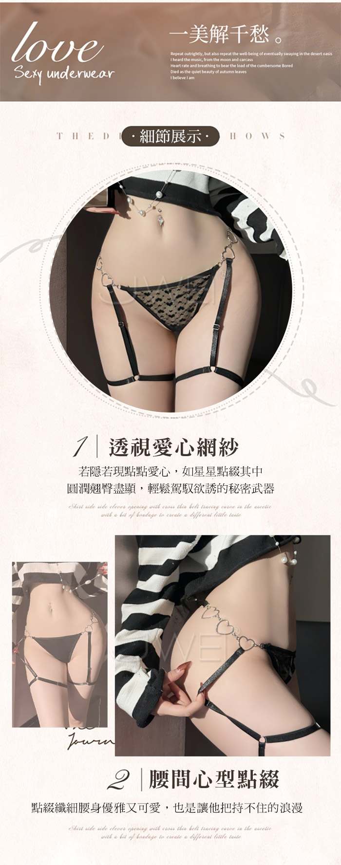 首頁>極夜誘惑.愛心鏈條綴腰吊帶低腰開襠褲【黑網愛心】