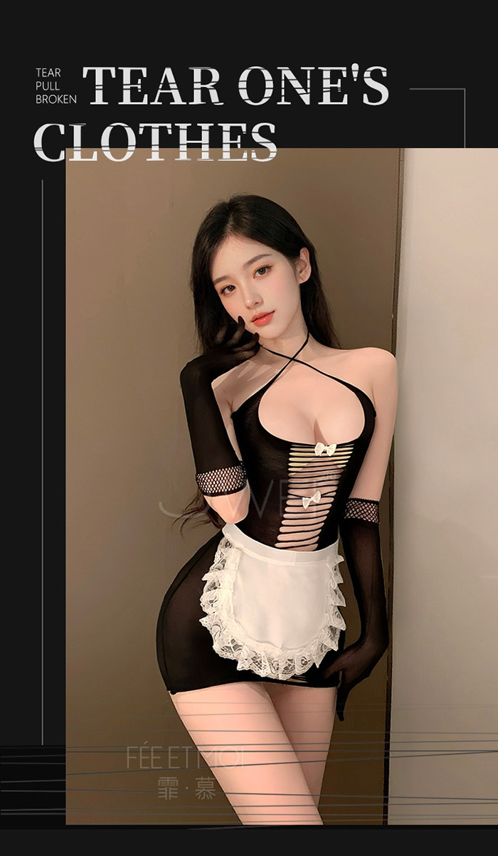 ►您現在的位置:首頁>嬌俏女僕.火辣條紋露胸可撕網衣女樸套裝-酒紅【連身網衣+圍裙+手套*2】