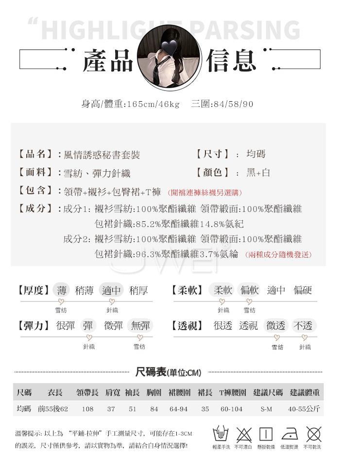►您現在的位置:首頁>風情秘書.透視開襟男友風襯衫開衩包臀短裙誘惑秘書套裝【襯衫+領帶+包臀裙+內褲】
