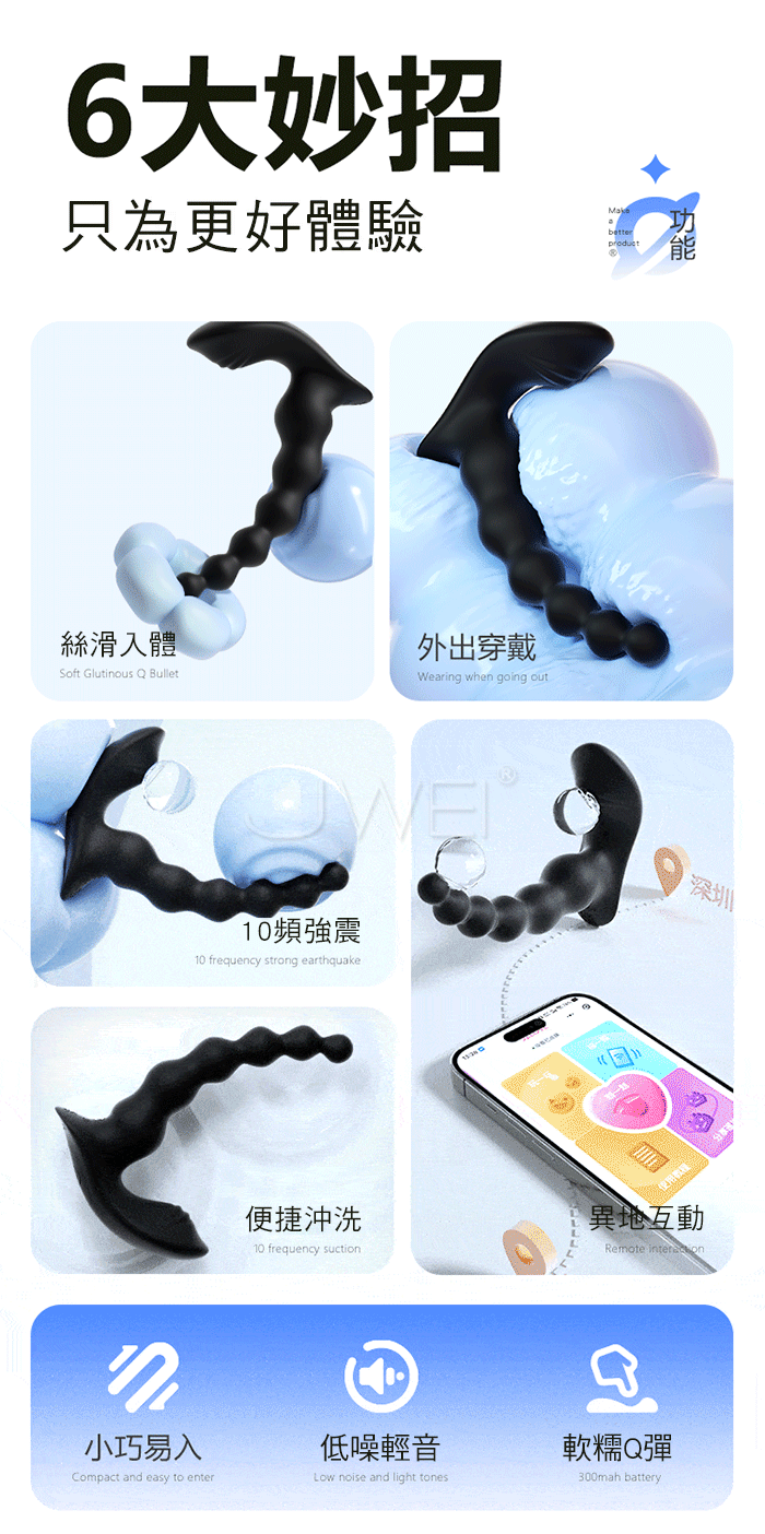 拉珠摩擦 無射快感!極夜前列腺,10頻穿透強震 層層遞進! 軟糯矽膠,舒適入體“柔軟不疼”外震蜜豆,挑逗咪咪 遠程控制,指尖把玩“距離不在是難題” 產品規格 ■材質: 矽膠+ABS ■規格: 詳如圖片標示 ■功能: 10頻震動、APP智控