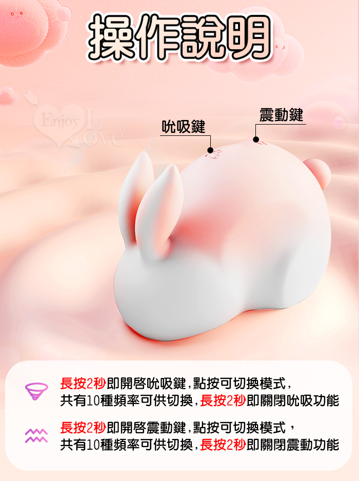 YEAIN夜樱 ‧ BOBO 啵啵兔 深層吮吸+拍打+震動來寵按摩器~迷漾白漸變粉色