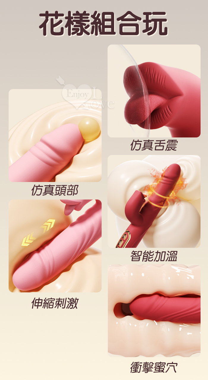 Soul Choice 露西 ‧ 動感10X伸縮10X舔震仿真老二按摩棒﹝衝擊蜜穴+唇舌強震+智能加溫+親膚矽膠+靜音防水/便捷充電﹞紅