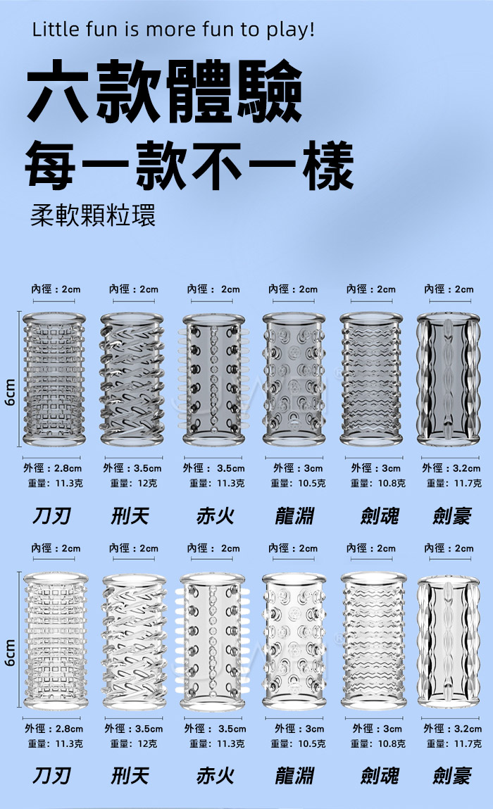 男性控時 女性幸福,你的久戰小秘密,帶上它,助你一夜久戰 大凸點顆粒刺激,親膚感受,親密貼合,完美適應,加大加粗,新體驗 經久耐用,柔軟拉伸,彈性十足,愛的長久,舒適安心 耐久使用 ■材質:TPE ■功能:顆粒刺激,鎖精延時 ■內容:單入裝