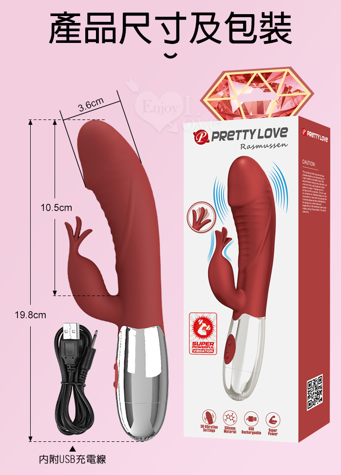 PRETTY LOVE 派蒂菈 ‧ 飛天鵝 雙重強震 內外同享30頻老二頭按摩棒-充電款 Rasmussen
