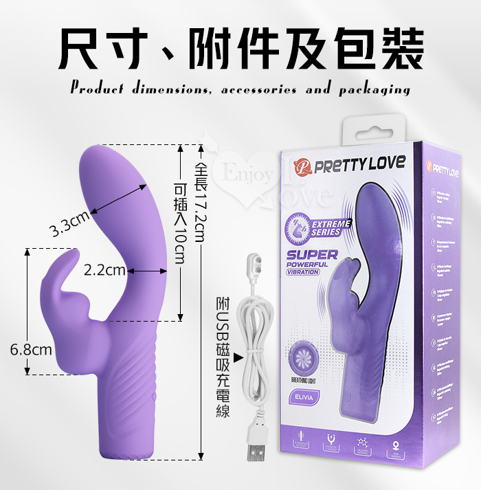 派蒂菈 ‧ Elivia 愛莉維亞 大震撼雙馬達內外雙潮 10變頻炫彩強震動按摩棒-紫