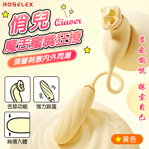 ROSELEX 俏兒 ‧ 魔舌蜜嘴狂撩+長跳蛋 舔震聯手雙組合按摩器﹝花樣玩法/10頻強震/內外同享潮吹/親膚矽膠﹞黄