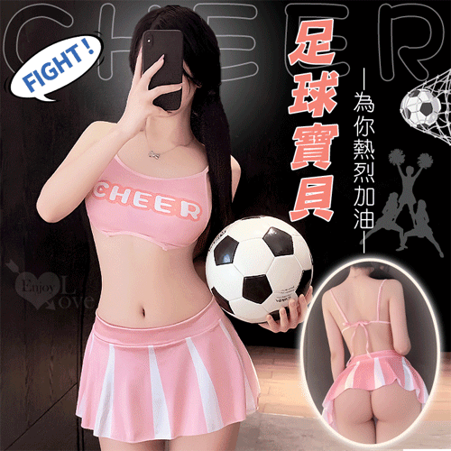 啦啦隊足球寶貝套裝|後背鏤空印花短上衣 × 撞色短裙 運動風三件組