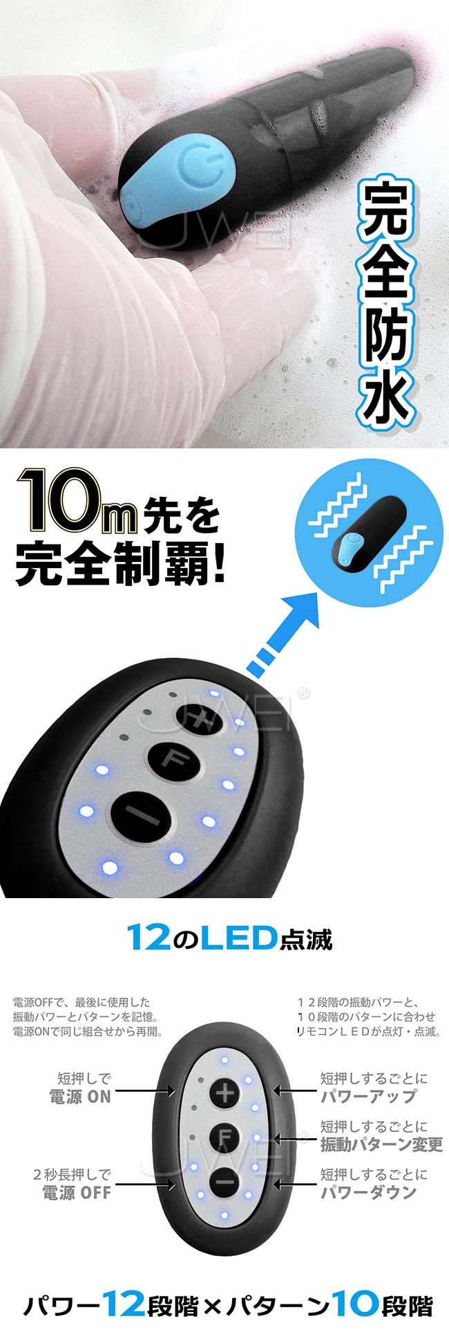 | 日本原裝進口SSI. 遠隔ピンクローターType-R 12x10段變頻遠端操控遙控跳蛋-黑色