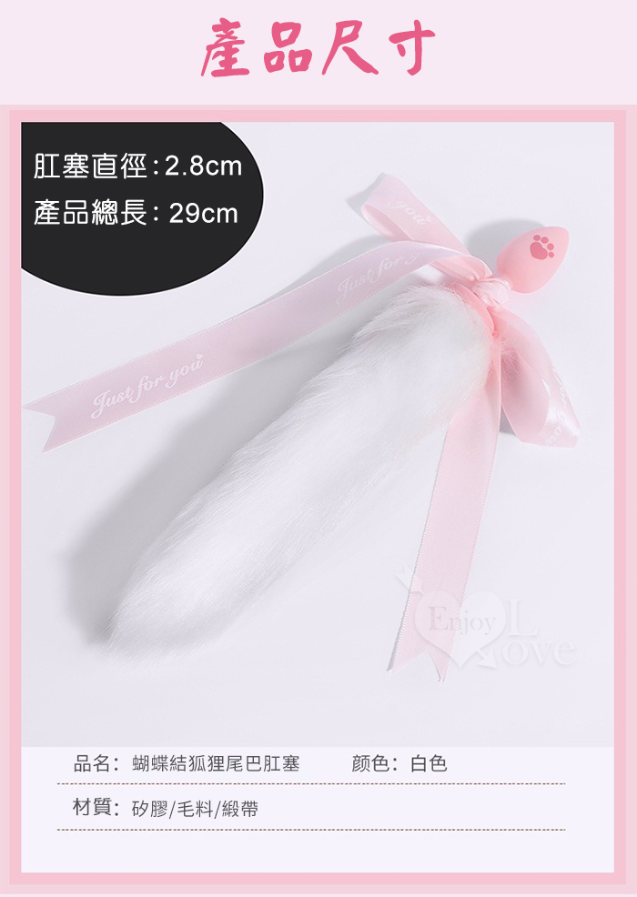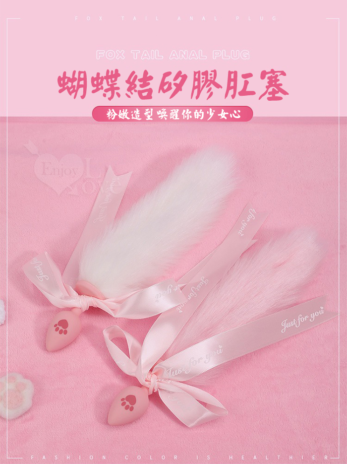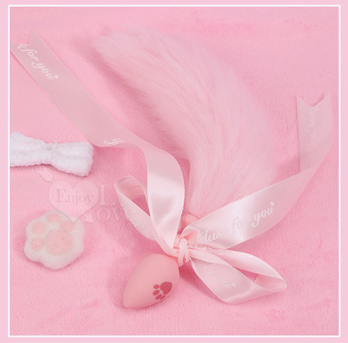 激性扮演 ‧ 蝴蝶結狐狸尾巴 可愛猫爪印親膚矽膠肛塞﹝白色﹞