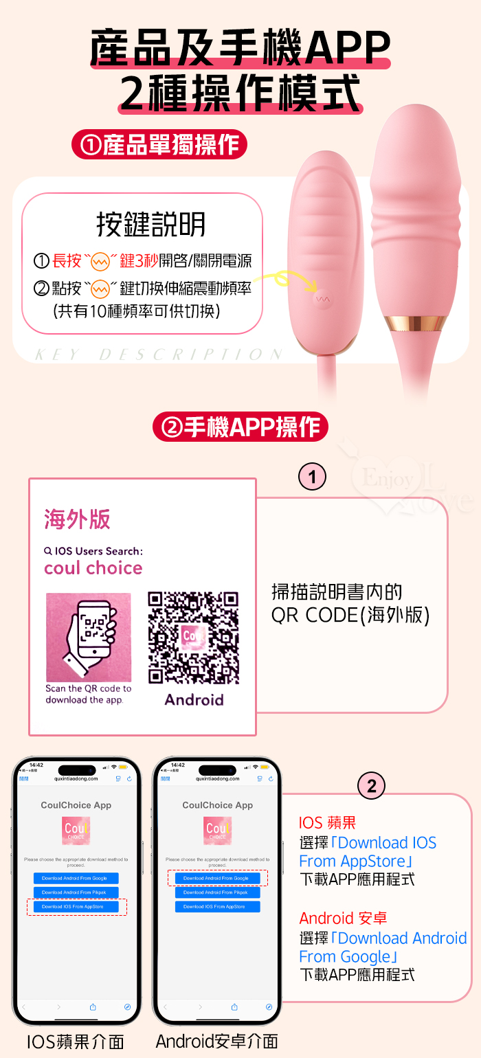 ►您現在的位置:首頁>勞樂斯 ‧ 双子伸縮爆震跳蛋棒組合~邊震邊頂/10調頻/入體內外共爽/手機APP﹝具兩種操控模式﹞粉