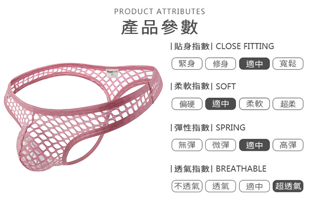 《 Enjoy Love 》性感半透大網孔男士丁字褲 - 粉﹝XL﹞