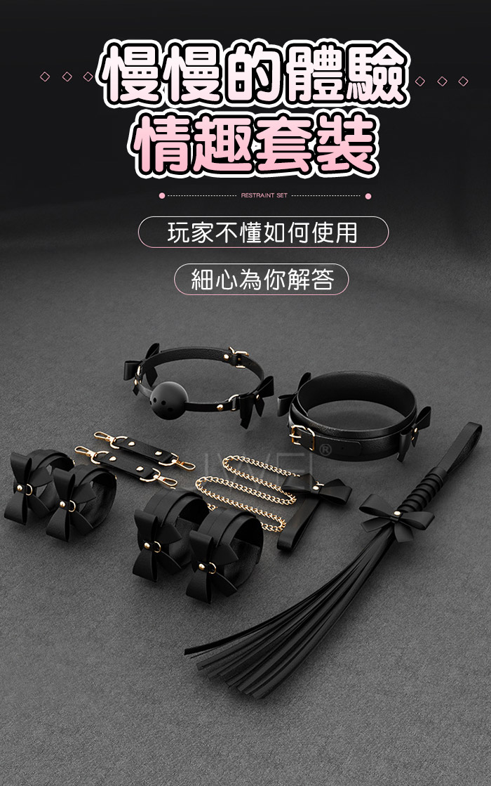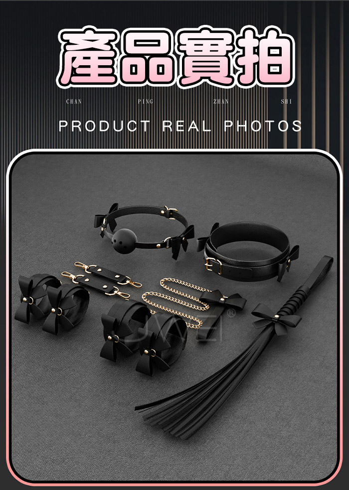 | SM束縛套裝. 黑色情趣 蝴蝶結皮革捆綁束縛7件組套裝