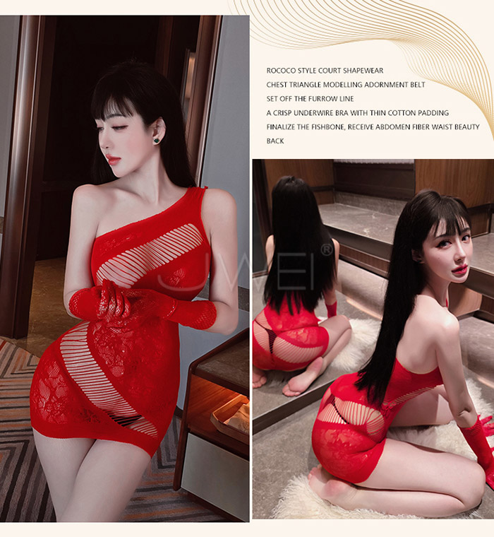 ►您現在的位置:首頁>魅惑乳香.斜肩鏤空露乳半遮蜜桃包臀網衣-紅色【單件網衣+紅色網眼手套】