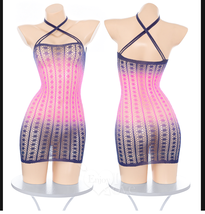 可撕鏤空網紗連身裙|漸層彈力包臀睡衣・交叉肩帶多穿法