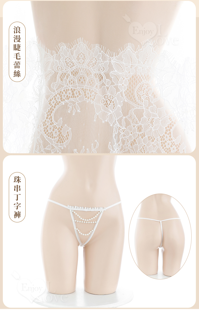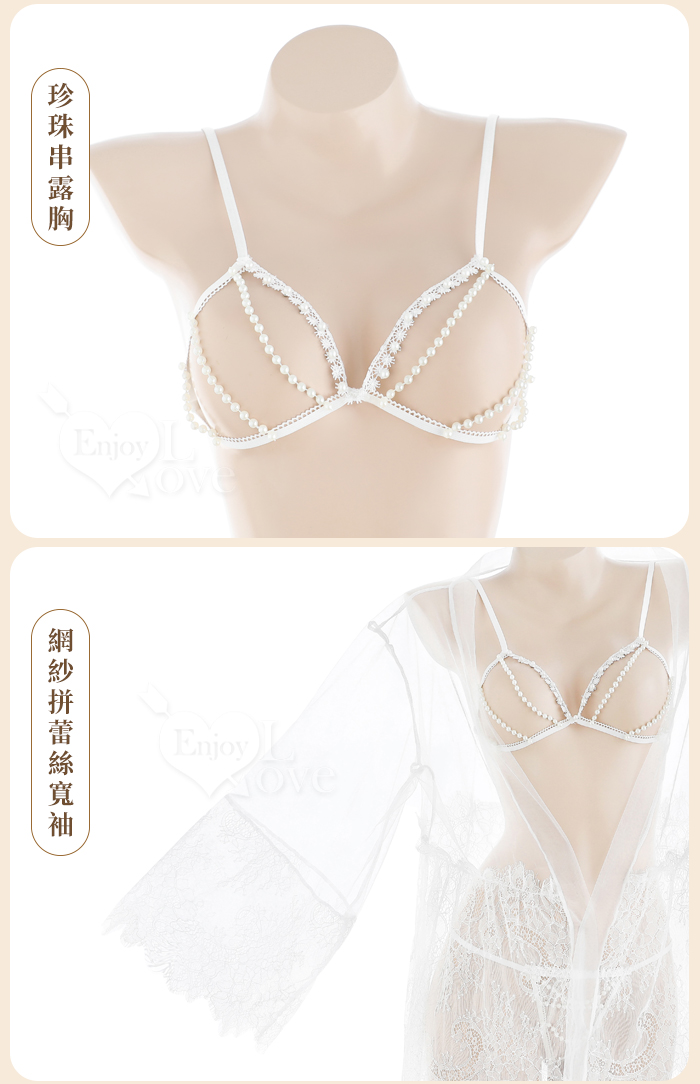 鏤空珠串蕾絲情趣套裝|透紗罩衫+珠鏈比基尼+丁字褲三件組