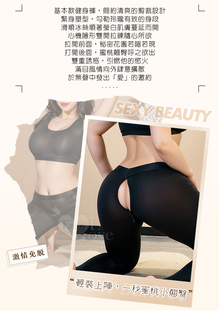 | 【棉花糖女孩】大尺碼情趣睡衣!冰絲順滑緊身小可愛 × 雙頭拉鍊免脫瑜珈褲|機能二件組﹝灰﹞