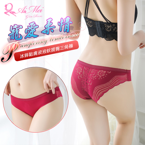 | 寵愛柔情!冰絲貼膚波浪紋提臀低腰三角褲﹝酒紅﹞
