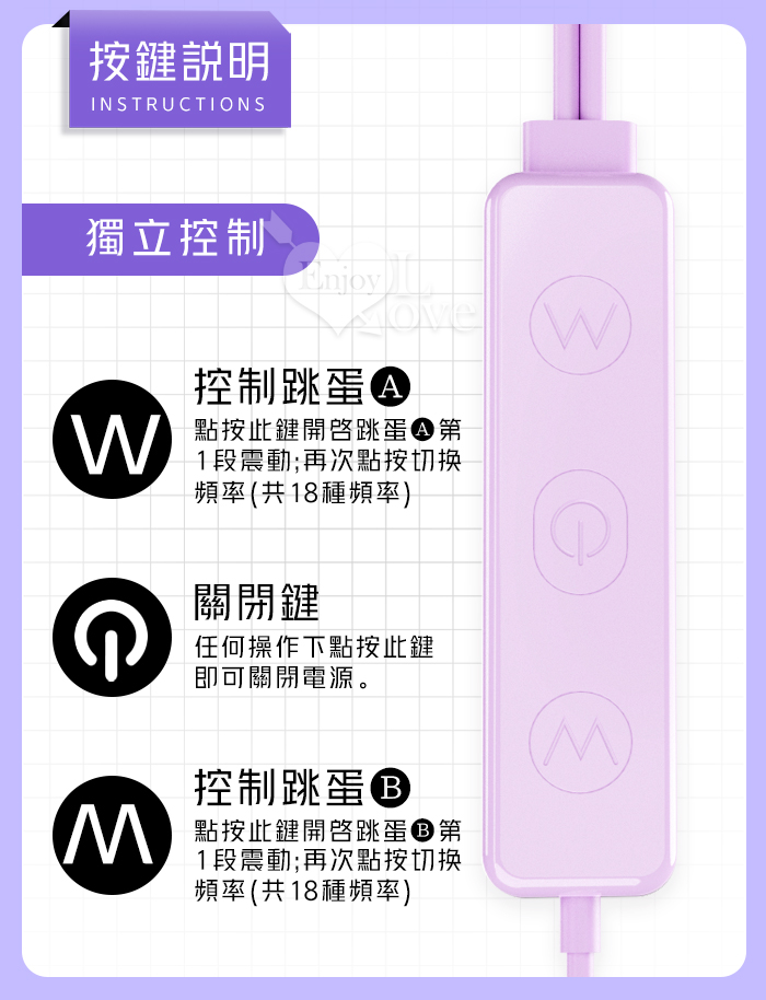 | ROSELEX 勞樂斯 ‧ 雙圓跳蛋 18頻調控強震入體雙跳蛋﹝內外刺激+USB直插供電+雙邊可獨立控制﹞淺紫