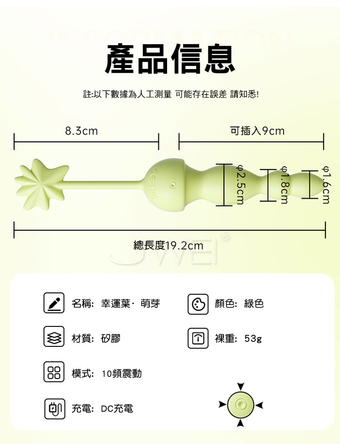激爽快感 無痛入體 澎湃動能加持,悅享每一刻,男女皆可用哦~ 10頻激震剮蹭蜜道,直至快感的頂峰,提供源源不斷刺激快感刺激更深處 安心暢玩,新手入門級盲選,巧妙防滑入,讓你大膽的「外出冒險」 產品規格 ■材質: 矽膠 ■規格: 詳如圖片標示 ■功能: 10頻震動、APP智控