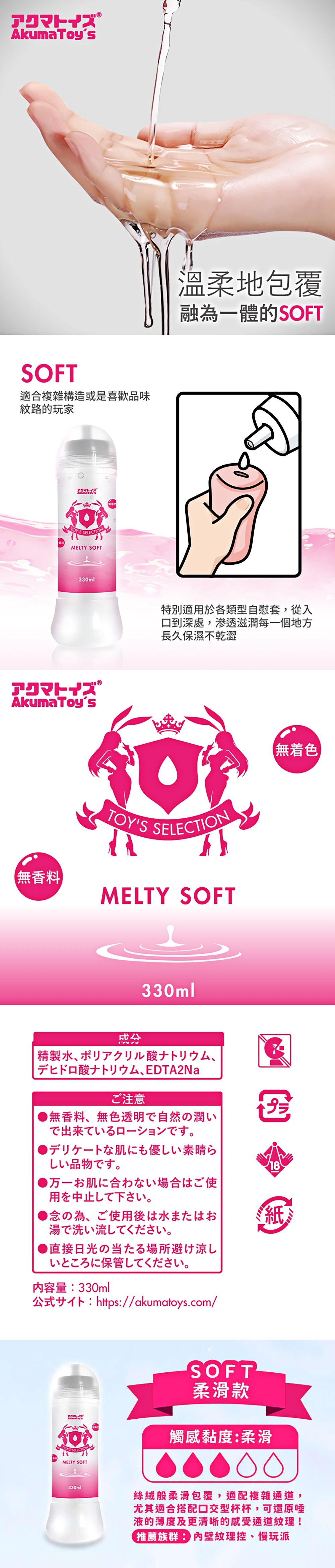 用途:用於肌膚潤滑 容量:330ml 總重:約359g 尺寸:18.5x6.1x6.1cm 保存期限:3年 產地:中國 注意:請保存於陰涼處 ※情趣用品屬於個人衛生用品,經拆封使用,無法接受退換貨!※ ※每台電腦的解析度皆不同,可能有些微色差,顏色皆以實品為主!※