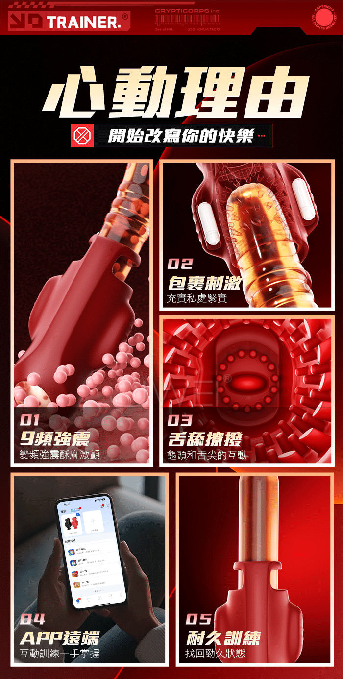 | 丁丁.10頻雙馬達強莖舌撩震顫 APP智能遠控自慰訓練器【黑色】