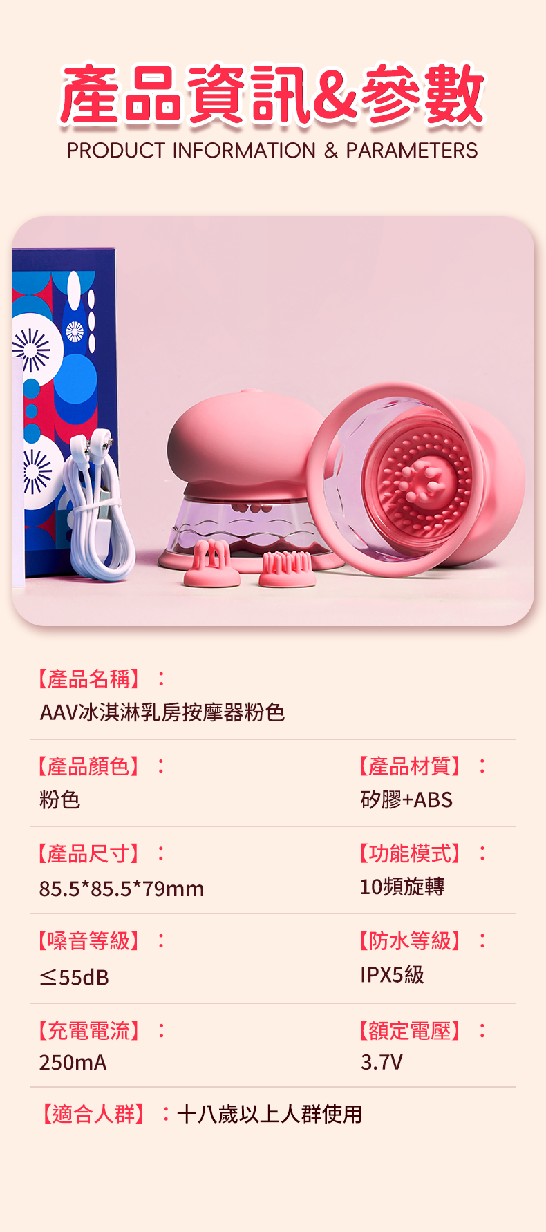 | AAV 冰淇淋.乳房吸吮10頻按摩器 女用乳頭刺激挑逗 胸部按摩旋轉(一對裝)
