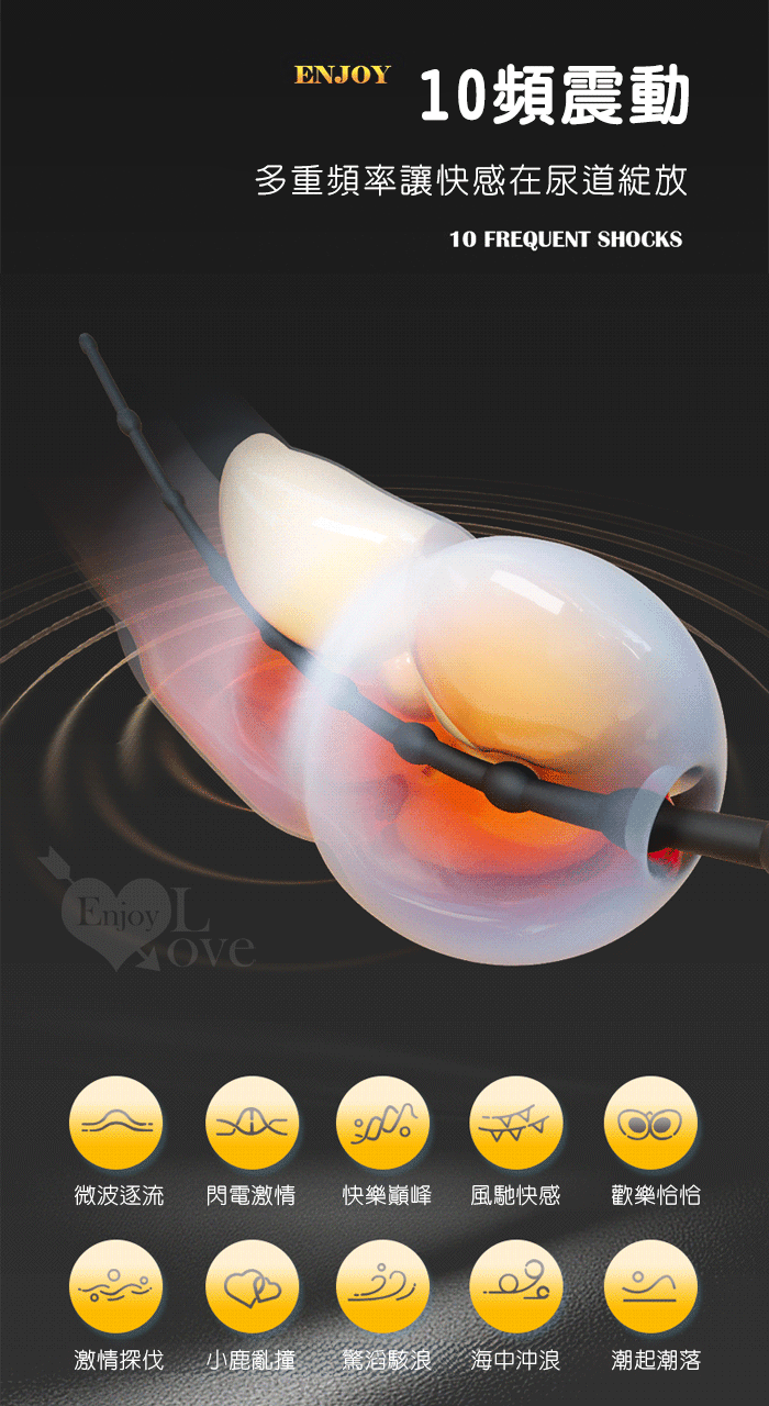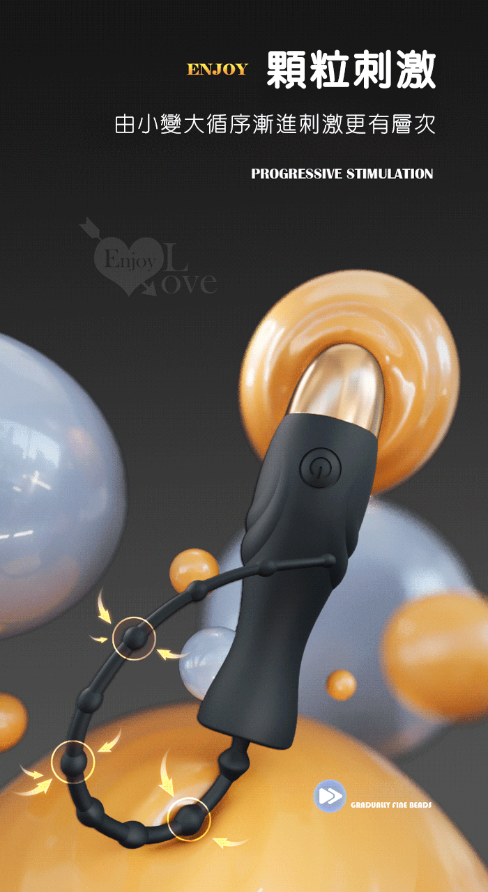 | ENJOY 10細珠馬眼棒~輕鬆觸腺10變頻震動深度拉珠刺激 - 可插入15公分