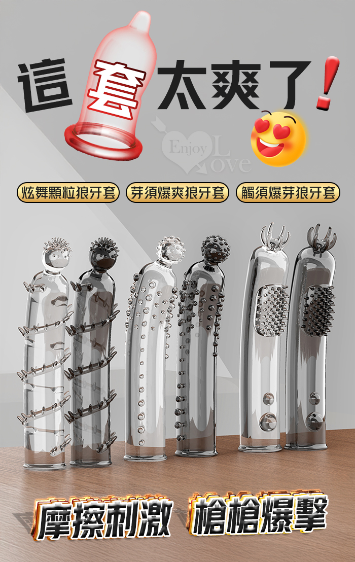 | 取悅 ‧ 觸鬚爆芽狼牙加強套-59個密集顆粒刺激G點~槍槍爆擊﹝透明黑﹞